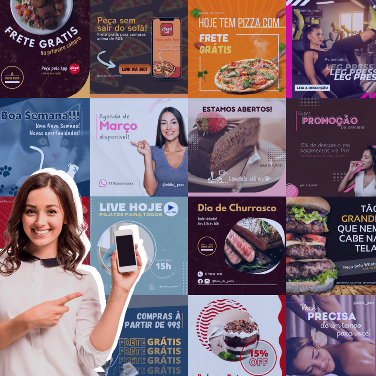 O Mídia Pass te da acesso a um conteúdo suficiente para você criar posts para sempre! Seja para suas campanhas, feed de instagram e Stories! Com um Enorme Pack de templates, e vários bonus, como: Fontes para importar em seus projetos, um banco de imagens com mais de 30 MIL imagens para artes, dentre PNG's Texturas, Backgrounds e muito mais, e ainda um PDF que te explica como aplicar as cores do seu Design! Pare de perder tempo criando artes,e foque nas demais funcões da sua empresa!